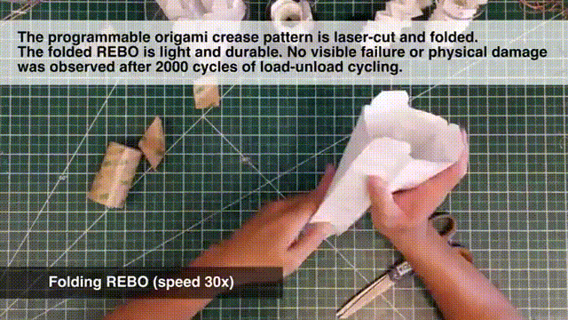 ? ? ? ? 多結(jié)構(gòu),多種類的新型機(jī)器人層出不窮,近期賓夕法尼亞大學(xué)的研究人員受折紙藝術(shù)啟發(fā),創(chuàng)造出一種靈活的“軟”彈簧折紙機(jī)器人,該機(jī)器人的名字叫REBO,通過折紙波紋管圖案的幾何設(shè)計(jì)實(shí)現(xiàn)了彈性軸向順應(yīng)性,從而降低材料重量并減少能量損失。
