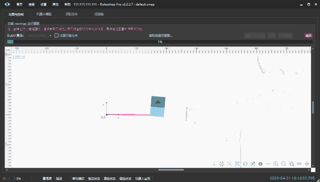 完成 nanoScan3 的接入后即可開始 SLAM 建圖,我們采用常規(guī)的建圖方式,即繞現(xiàn)場環(huán)境兜一圈使地圖形成閉環(huán),過程如下:
