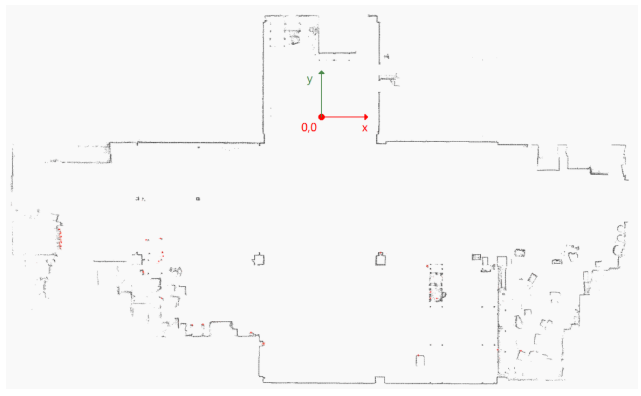 建圖時的運行速度為 1m/s,角速度 30°/s。簡單擦去地圖中的動態(tài)物體后得到的地圖如下: