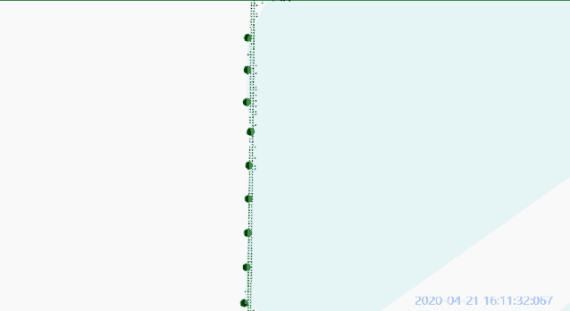 上圖中紅色的激光點比綠色的激光點反射率高,說明激光檢測到了條狀的反光物,并且反光物呈直線,沒有出現(xiàn)變形和噪點。