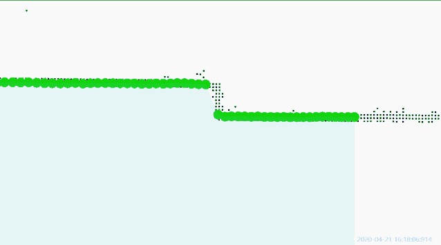通過動圖可以看到,nanoScan3 在遠(yuǎn)距離測距方面十分優(yōu)秀,數(shù)據(jù)的跳動基本在兩個地圖點之間(約2cm),性能遠(yuǎn)超同類的產(chǎn)品。