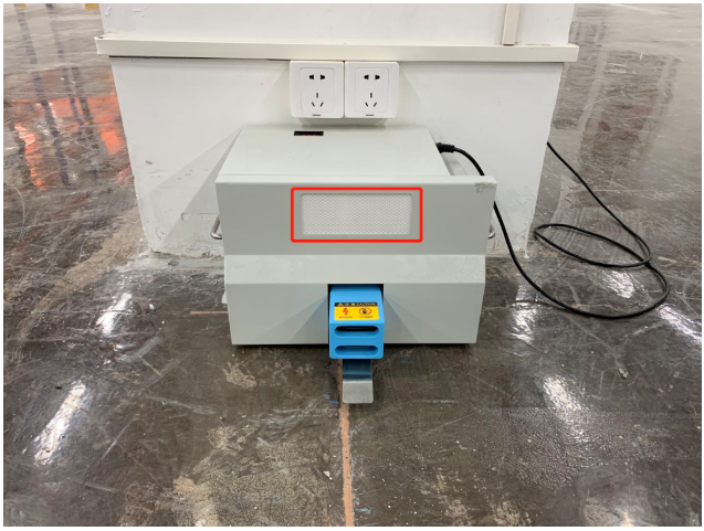 反光物體測試使用仙知專用充電樁進(jìn)行測試,主要測試在不同距離下nanoScan3 得到的反射率是否穩(wěn)定,下圖紅框中即為 3M 反光條,長度為 18cm。