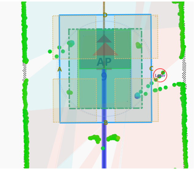 如下圖為其他品牌的激光雷達(dá)產(chǎn)生嚴(yán)重前景噪聲的情況,該情況會直接影響到潛伏牽引機(jī)器人的正常工作。