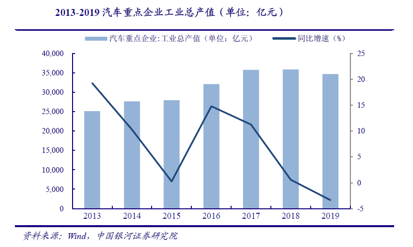消費(fèi)刺激、產(chǎn)業(yè)升級(jí),汽車行業(yè)總產(chǎn)值仍有望持續(xù)增長(zhǎng)。過去十年,隨著我國(guó)經(jīng)濟(jì)的高速增長(zhǎng),居民消費(fèi)能力穩(wěn)步提升,汽車工業(yè)快速發(fā)展。2013 年汽車重點(diǎn)企業(yè)的工業(yè)總產(chǎn)值為2.5 萬(wàn)億,2019 年增加到 3.5 萬(wàn)億,CAGR5.8%,汽車銷量也節(jié)節(jié)攀升,從 2010 年的 1,806 萬(wàn)輛至 2018 年的 2,808 萬(wàn)輛。雖然近一兩年汽車行業(yè)增速放緩,但從長(zhǎng)期來看,汽車配置的提高,零部件國(guó)產(chǎn)化比例的提高,電動(dòng)化、智能化、互聯(lián)化等新技術(shù)的快速發(fā)展,以及國(guó)內(nèi)汽車產(chǎn)業(yè)的擴(kuò)大開放都將有助于汽車產(chǎn)業(yè)的升級(jí),我國(guó)汽車市場(chǎng)仍有較大發(fā)展空間,因此對(duì)工業(yè)機(jī)器人的部署數(shù)量有望增加。