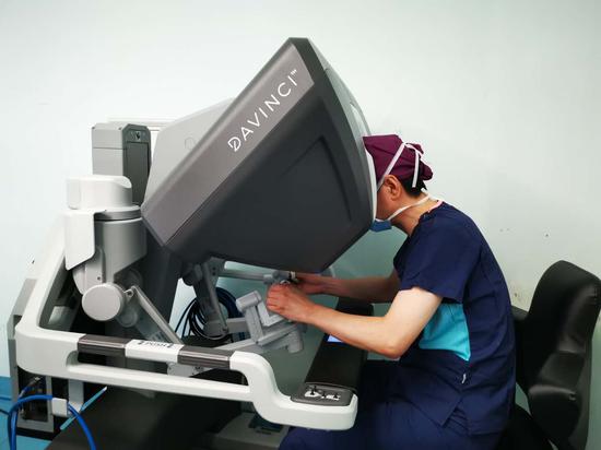 泌尿外科主任種鐵教授正在操作機器人手術(shù)