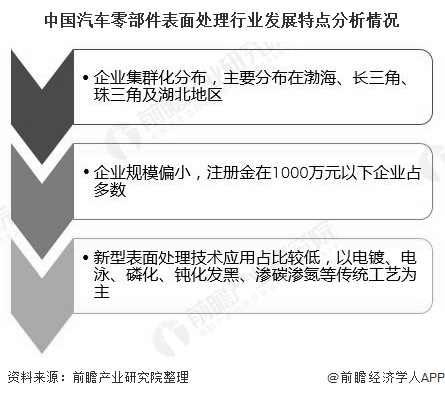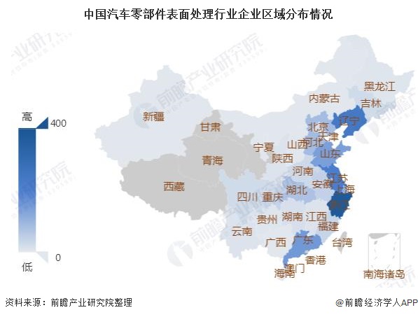 目前,中國(guó)從事汽車零部件表面處理相關(guān)業(yè)務(wù)的企業(yè)有1000多家,企業(yè)主要分布在環(huán)渤海、長(zhǎng)三角、珠三角及中部湖北地區(qū),企業(yè)分布呈現(xiàn)一定集群效應(yīng)。