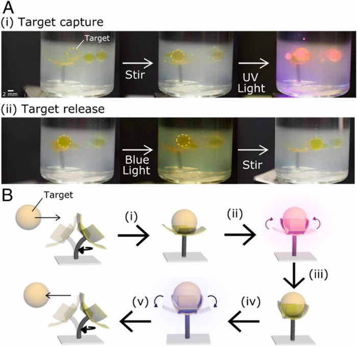 在一次實(shí)驗(yàn)中,該團(tuán)隊(duì)通過讓機(jī)器人從水樣中捕捉油滴,展示了其受珊瑚蟲啟發(fā)的機(jī)器人的能力。作為額外的一層功能,還可以使機(jī)器人保持一種新的形狀,例如 "抓取 "狀態(tài),直到它暴露在正確的光線下?!斑@有助于控制抓取臂;一旦有東西被抓取,機(jī)器人就可以一直保持著它,直到再次被光刺激才會(huì)釋放它?!盤ilz Da Cunha說。