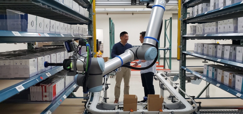 除了醫(yī)療設(shè)備,目前市場對在線購物的需求也在激增,以減少接觸。DCL Logistics是一家位于美國硅谷的配送中心,隨著客戶越來越多地轉(zhuǎn)向在線購物,電子商務(wù)增長顯著,該公司在已擴展的輸送機系統(tǒng)上部署了第二臺UR10協(xié)作機器人,以應(yīng)對近期大量增長的網(wǎng)購需求。
