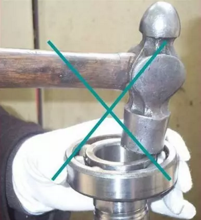 不允許強(qiáng)力沖壓,不允許用錘直接敲擊軸承,不允許通過滾動體傳遞壓力。
