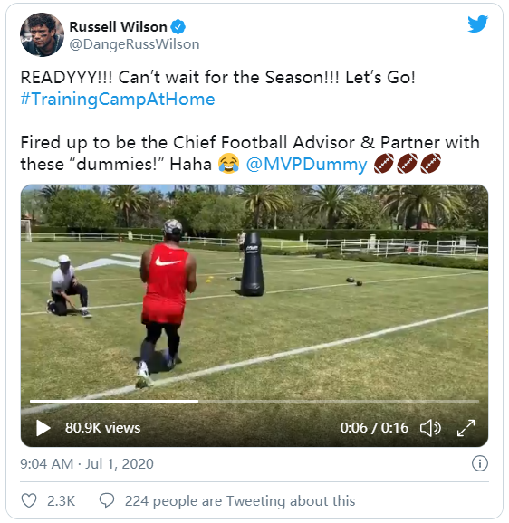 西雅圖海鷹隊(duì)四分衛(wèi)拉塞爾·威爾遜(Russell Wilson)正在為即將到來(lái)的賽季做準(zhǔn)備,近日他在推特中發(fā)了一條推文,視頻顯示他躲過(guò)了一個(gè)黑色機(jī)器人,該機(jī)器人在傳球高峰是進(jìn)入,它是沖刺MVP,具有可移動(dòng)、遠(yuǎn)程控制、自動(dòng)校正、帶襯墊的訓(xùn)練機(jī)器人,重160磅,時(shí)速16 mph,售價(jià)為3,450美元。