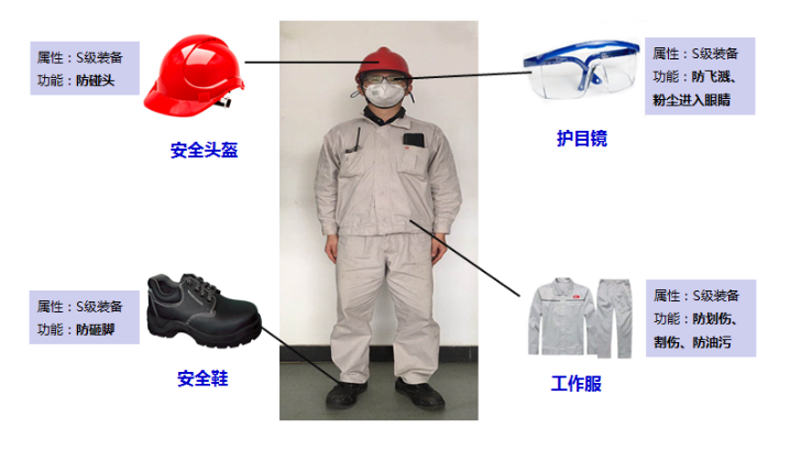 對工業(yè)機(jī)器人進(jìn)行日常維護(hù)及操作前,要求佩戴安全頭盔、護(hù)目鏡、安全鞋及工作服。防割手套隨身攜帶,搬動(dòng)工件或觸摸其他外露設(shè)備時(shí)需佩戴手套,但在操作示教器時(shí)無需佩戴。