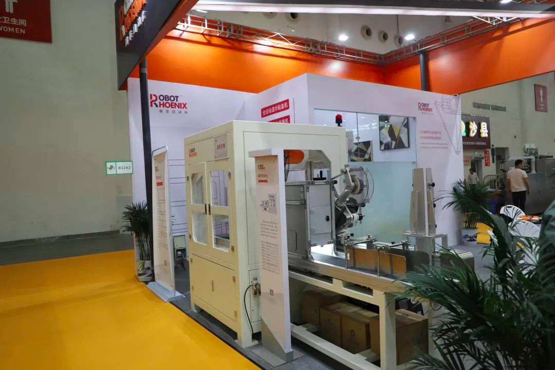 ▲ 翼菲自動化攜全自動濕巾粘蓋系統(tǒng)設備參加 2019 年第二十六屆生活用紙國際科技博覽會。