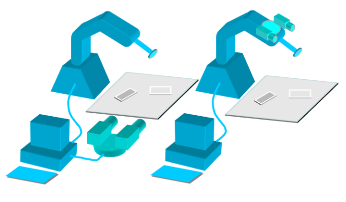 Eye in Hand:相機(jī)固連在機(jī)械臂上,隨機(jī)械臂運(yùn)動(dòng)而運(yùn)動(dòng)