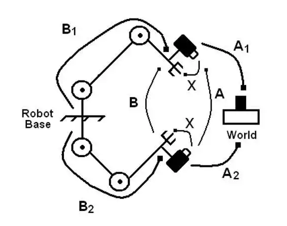 兩種方式的求解思路都類似,首先是眼在手外(Eye to Hand)