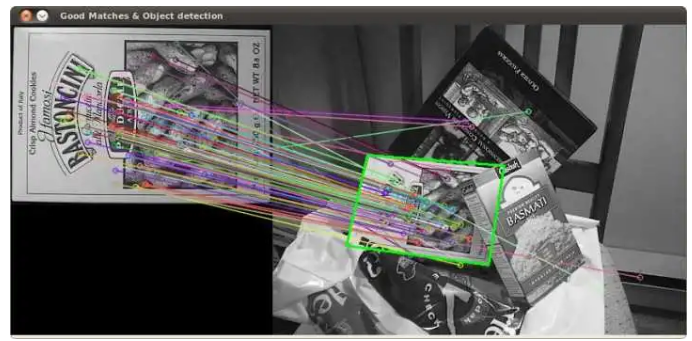 因此,利用 SIFT 特征點(diǎn),可以直接在相機(jī)圖像中尋找到與數(shù)據(jù)庫(kù)中相同的特征點(diǎn),這樣,就可以確定相機(jī)中的物體是什么東西(物體識(shí)別)。