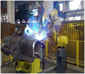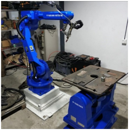 焊接機器人主要包括機器人和焊接設備兩部分。機器人由機器人本體和控制柜(硬件及軟件)組成。而焊接裝備,以弧焊及點焊為例,則由焊接電源,(包括其控制系統(tǒng))、送絲機(弧焊)、焊槍(鉗)等部分組成。對于智能機器人還應有傳感系統(tǒng),如激光或攝像傳感器及其控制裝置等。如果工件在整個焊接過程中無需變位,就可以用夾具把工件定位在工作臺面上。但在實際生產(chǎn)中,更多的工件在焊接時需要變位,使焊縫處在較好的位置(姿態(tài))下焊接。對于這種情況,變位機與機器人可以是分別運動,即變位機變位后機器人再焊接;也可以是同時運動,即變位機一邊變位,機器人一邊焊接,也就是常說的變位機與機器人協(xié)調(diào)運動。這時變位機的運動及機器人的運動復合,使焊槍相對于工件的運動既能滿足焊縫軌跡又能滿足焊接速度及焊槍姿態(tài)的要求。實際上這時變位機的軸已成為機器人的組成部分,這種焊接機器人系統(tǒng)可以多達7-20個軸,或更多。