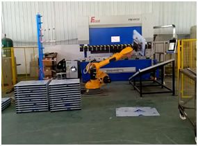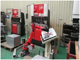 4、大板料工件以往需要2~3個(gè)折彎工人配合操作,使用折彎?rùn)C(jī)器人后可減少人員操作,降低成本、替代人工、減少安全事故;
